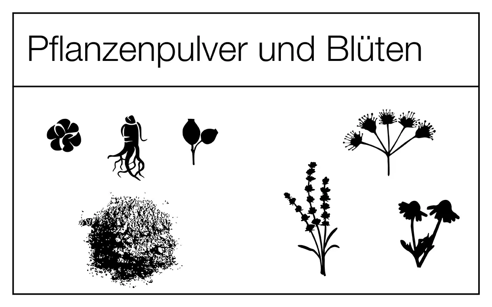 Pflanzenpulver und Blüten